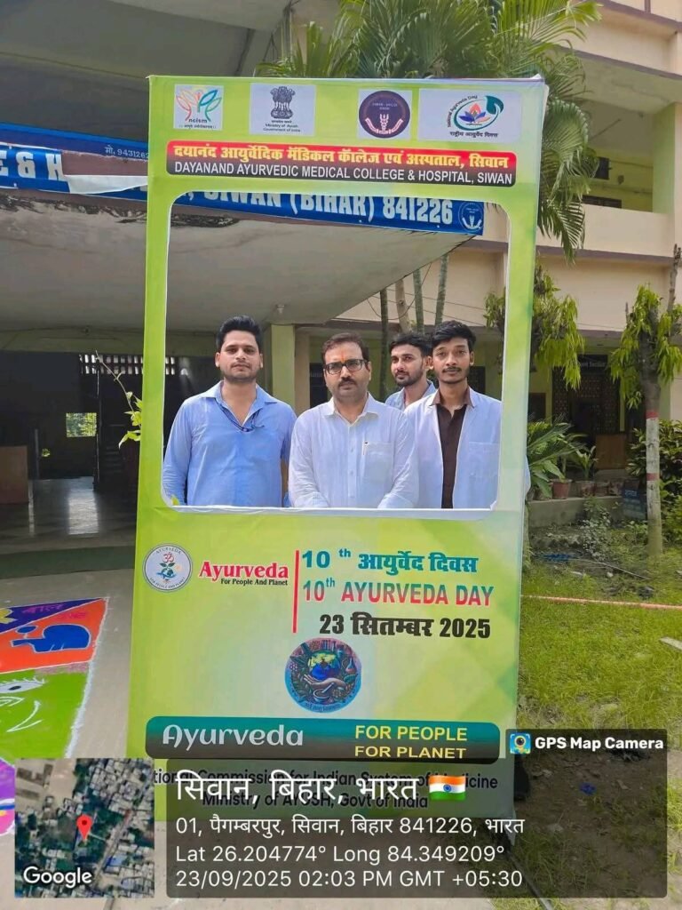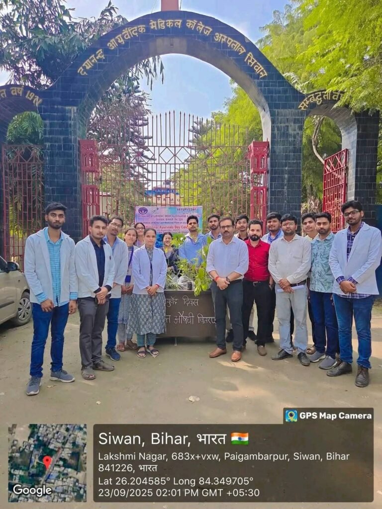 आयुर्वेद दिवस 2025 की हार्दिक शुभकामनायें!🌹🙏 आयुष मंत्रालय, भारत सरकार एवं भारतीय चिकित्सा पद्धति राष्ट्रीय आयोग के निर्देशन में 10 वाँ राष्ट्रीय आयुर्वेद दिवस के अवसर पर महाविद्यालय के चिकित्सकों, शिक्षकों एवं छात्रों के द्वारा आयोजित स्वास्थ्य शिविर, ,निशुल्क औषधि पादप वितरण, स्वास्थ्य जागरूकता, एवं विभिन्न सत्रों के छात्रों के द्वारा आयुर्वेद की प्रस्तुति दी गई।