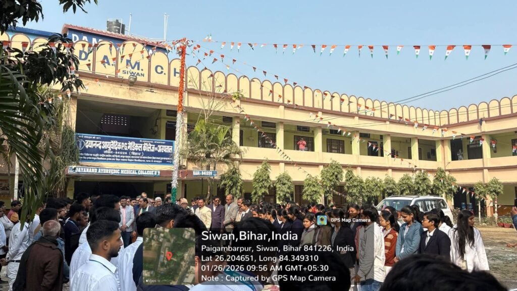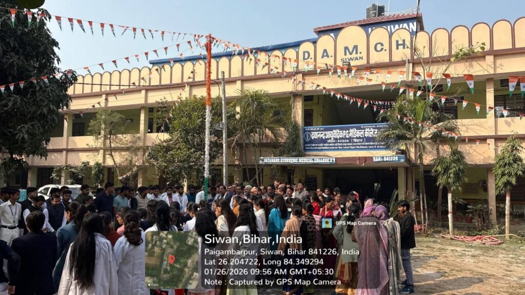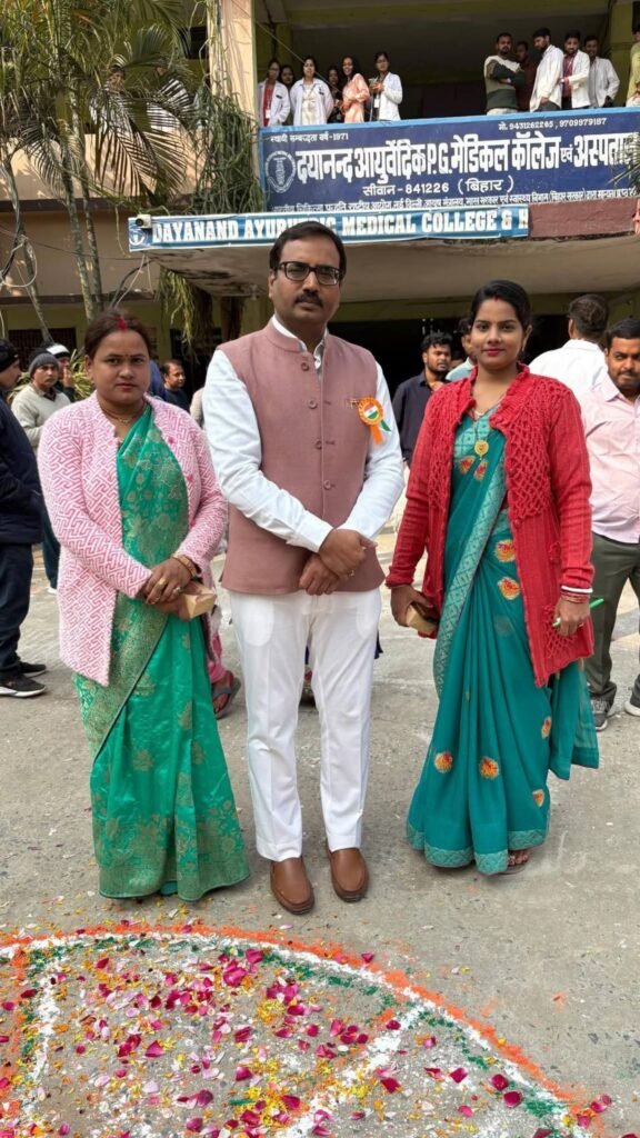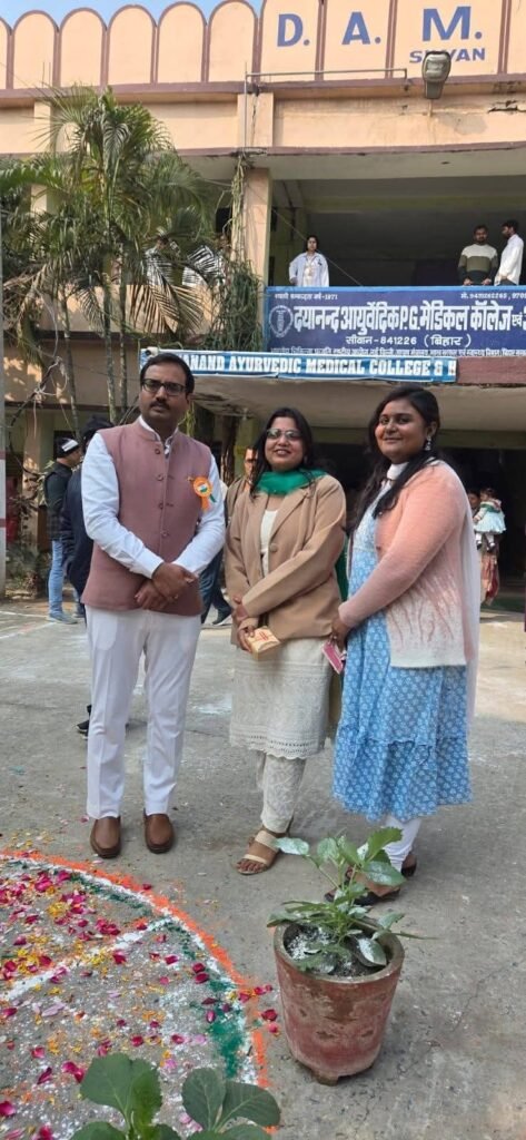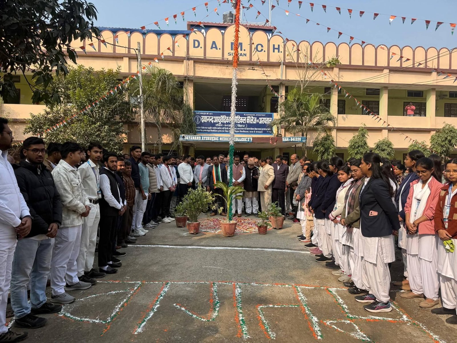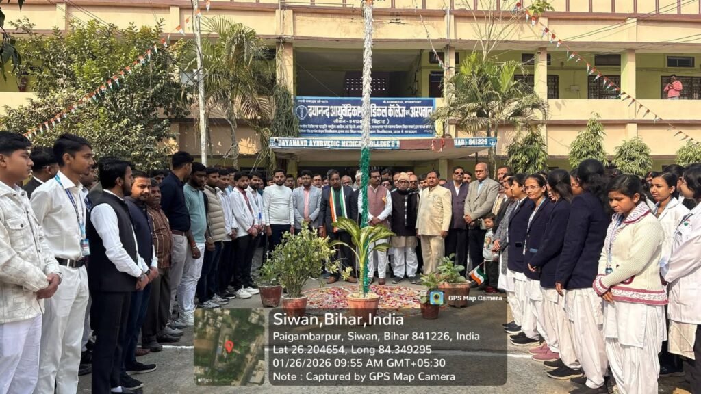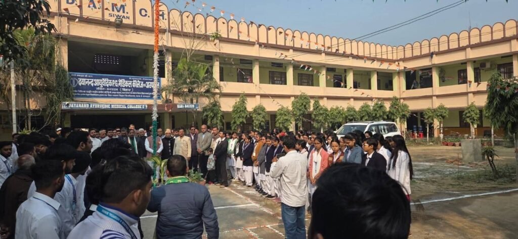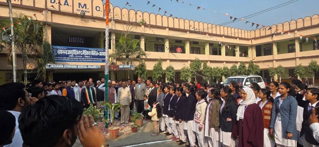 दयानंद आयुर्वेदिक मेडिकल कॉलेज एवं अस्पताल सिवान में  77वां गणतंत्र दिवस हर्षोल्लास से मनाया गया। इस अवसर पर महाविद्यालय के सभी शिक्षक,शिक्षकेतर, कर्मचारी, छात्र एवं छात्राओं ने अपने राष्ट्र एवं कर्तव्य के प्रति राष्ट्रीय ध्वज के तले शपथ लिया।