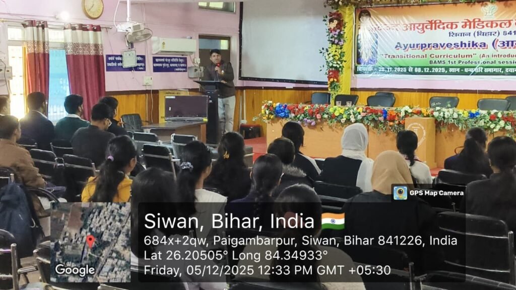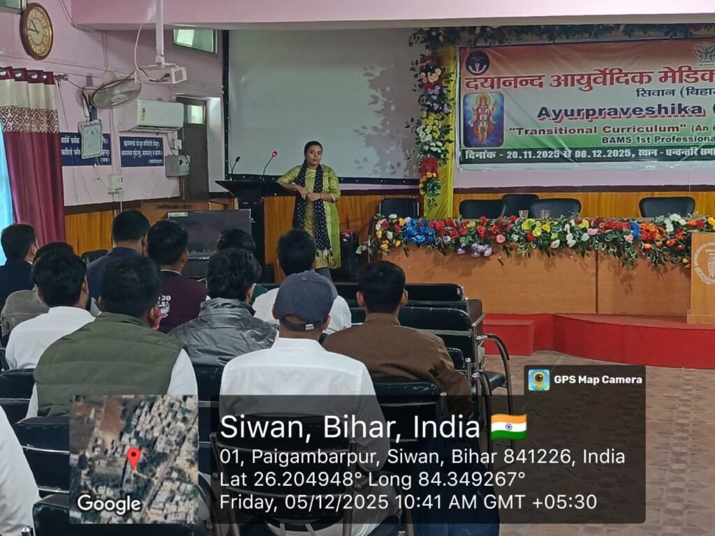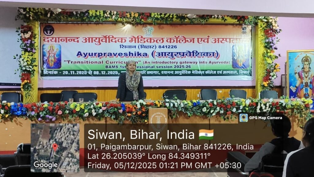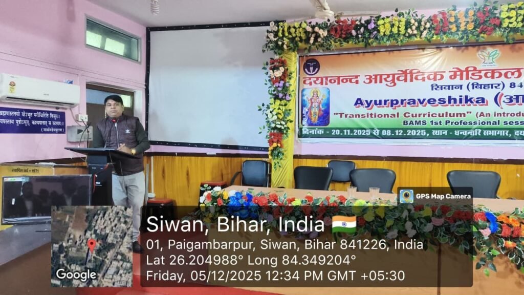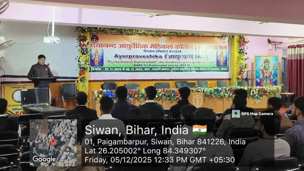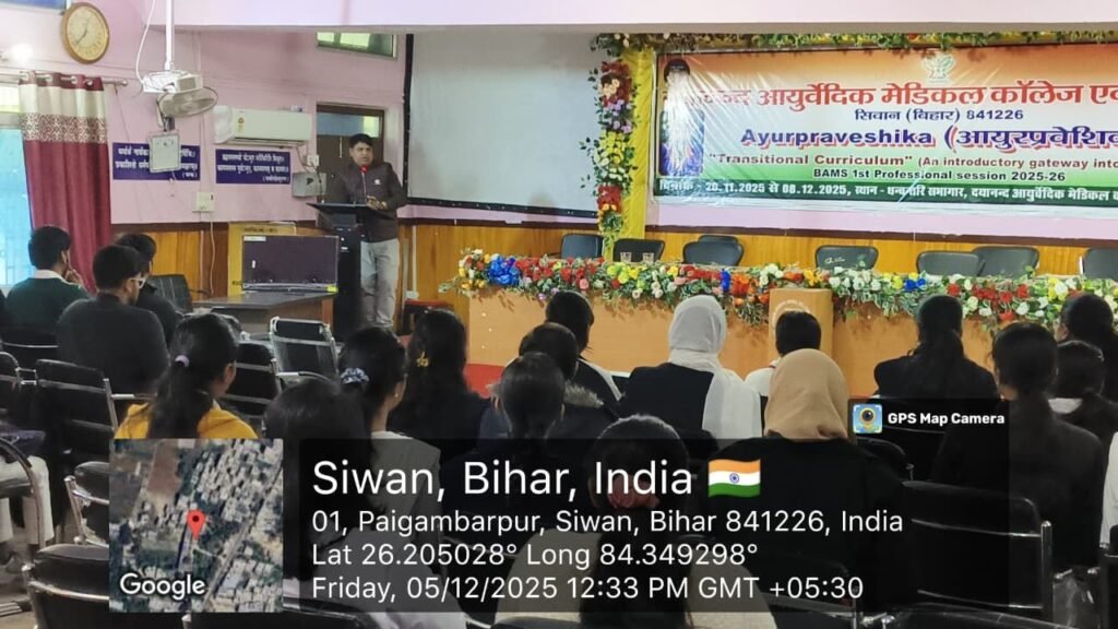दयानन्द आयुर्वेदिक मेडिकल कॉलेज एवं अस्पतालसिवान (बिहार) – 841226Ayurpraveshika (आयुर्व्रवेशिका)“Transitional Curriculum”(An introductory gateway into Ayurveda)BAMS 1st Professional session 2025-26DATE 12.12.2025 Dec 6, 2025 Ravi Shastri