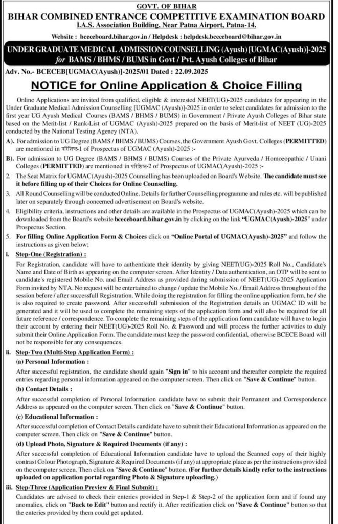 i. Seat Matrix posting on Board’s website ………………………………… : 22.09.2025