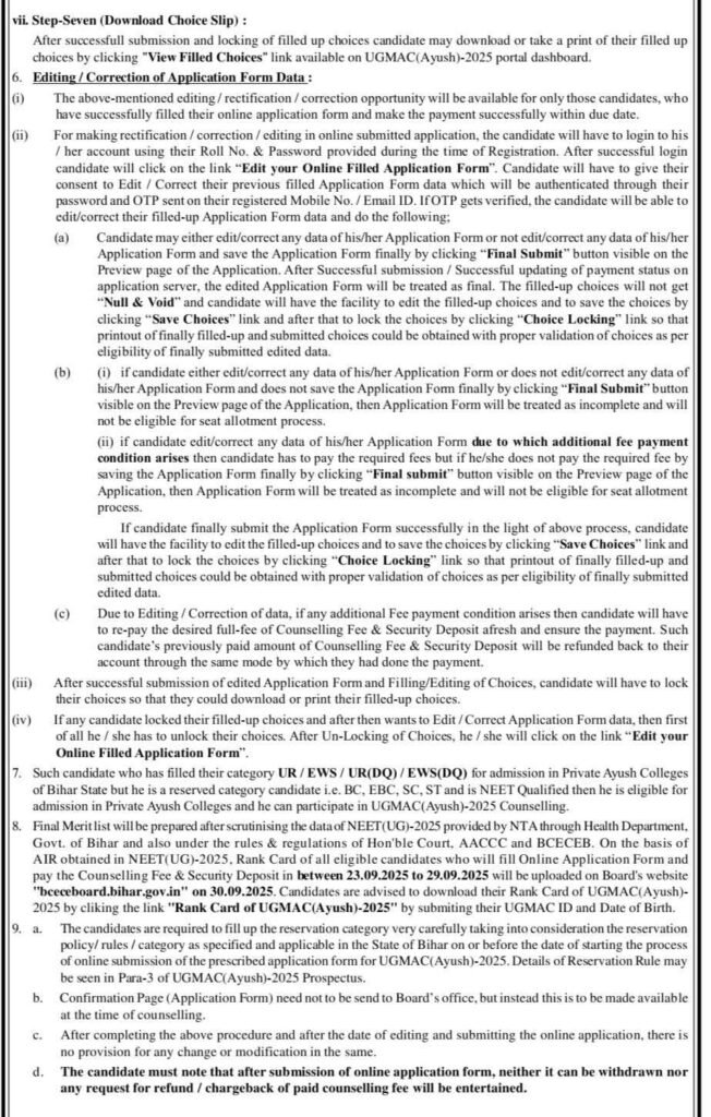 iii. Last date of online Registration & submission of Application with payment through Debit Card/ Credit Card/ Net Banking/ UPI by Registered candidate / Editing of Application Form data (Round-1 & Round-2) …………………………. : 29.09.2025 (10.00 pm)